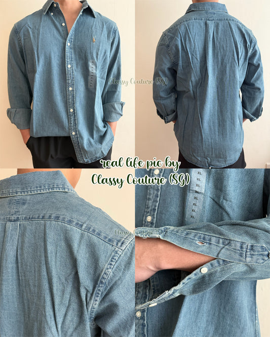 RL Men’s / Unisex Custom Slim Fit Denim Cotton Shirt
