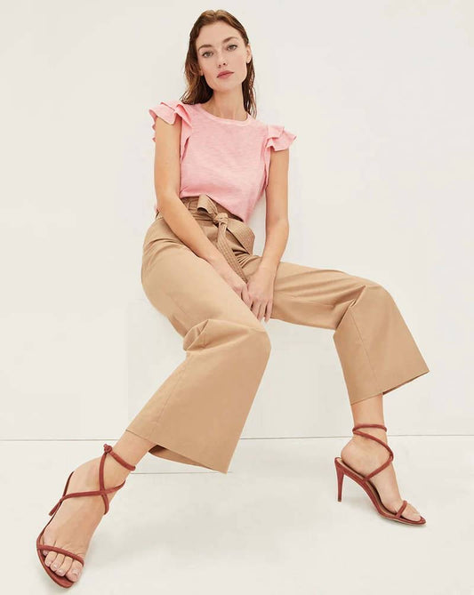 AA Linen-Cotton High Waist Wide Leg Trouser Pants in Oak & Indigo