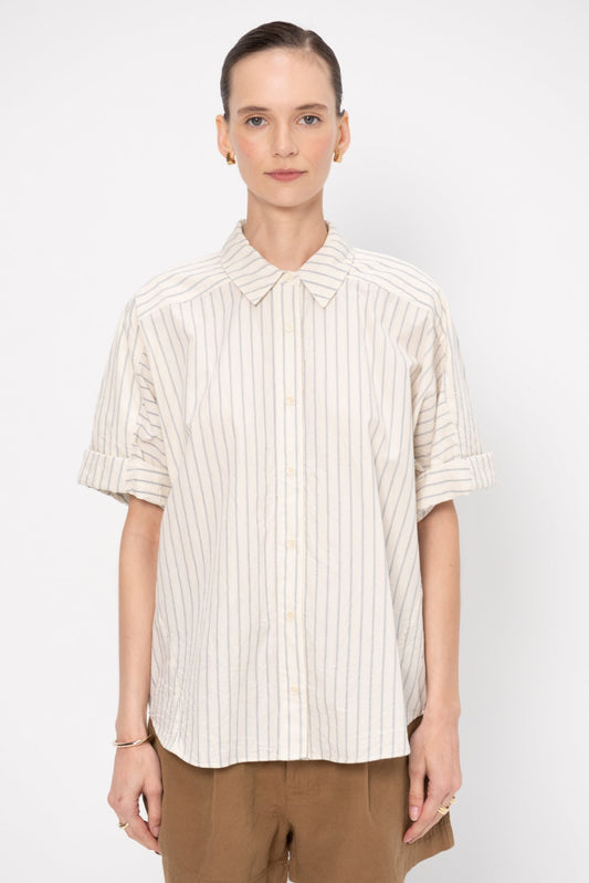 AA Breaze Shirt | Trail Shorts | Pina Stripes Cream & Navy Cotton Set