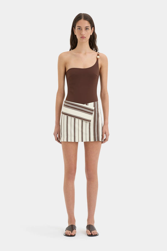 STL Cannoli Folded Mini Skirt | Pants | Cotton Blend Chocolate Stripe