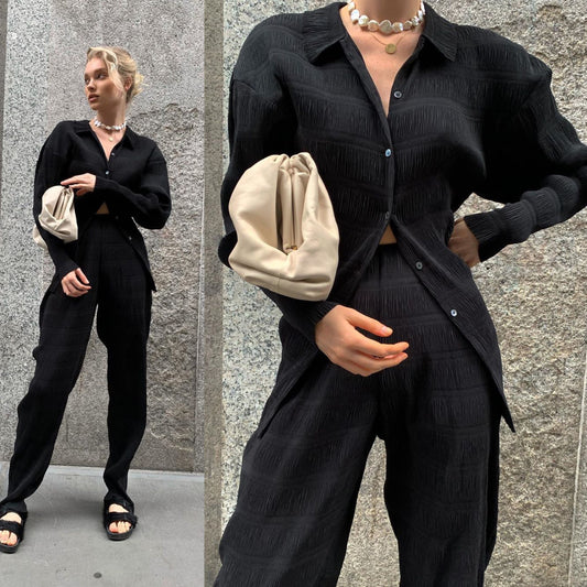 Tot Anzi Blouse | Smocked High Rise Slim Pants | top set
