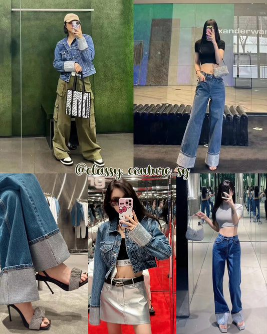 AW Crystal Embellished Denim Jacket | Pants | Set