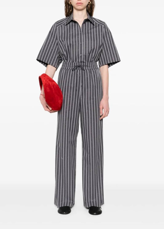 SD Midnight Striped Rhinestone Cotton Shirt | Middy Bubble Mini Skirt | Set