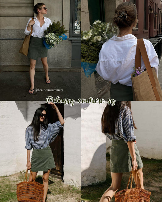 AA Lahiri Wrap Cotton Mini Skirt in Thyme Khaki Green