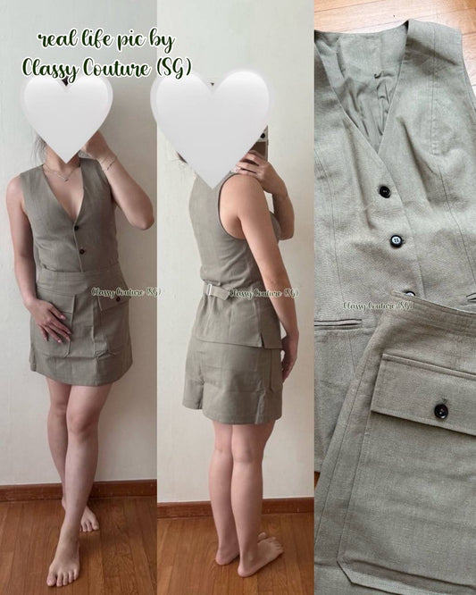 AA Helena V Neck Vest | Chi Mini Skirt | Cotton-Linen Set