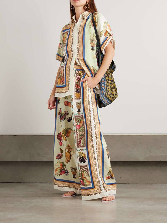 ALM Mercado Printed Linen Shirt | Pant | Wrap Mini Skirt | Set