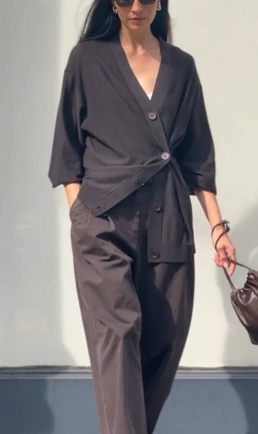 SL Clip Bias Cut Pants in Tulipa Black - Sheer Cotton-Silk