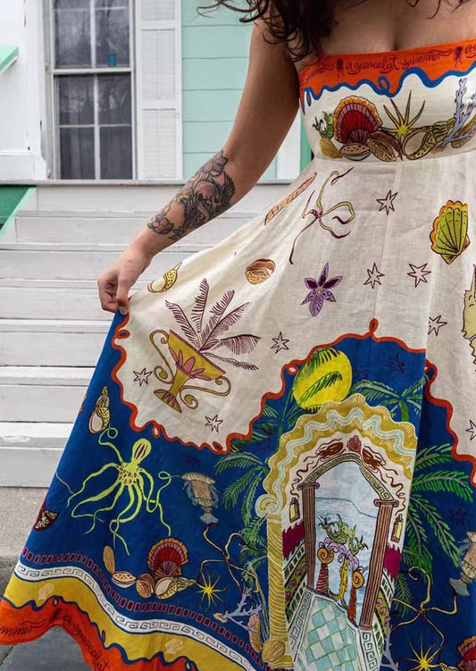 ALM Surrealist Summer Linen Midi Dress Sundress