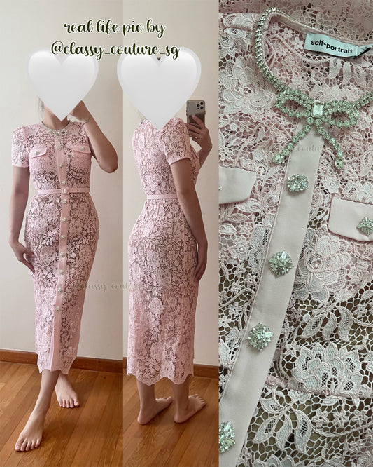 BEST! SP Pink Lace Diamante Bow Midi Dress