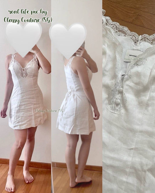 Ref Felipe Belted Cap Sleeve Linen Midi Dress