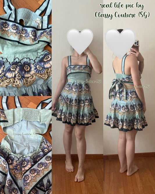 ALM Madalena Linen Sleeveless Cut-Out Tiered Mini Dress