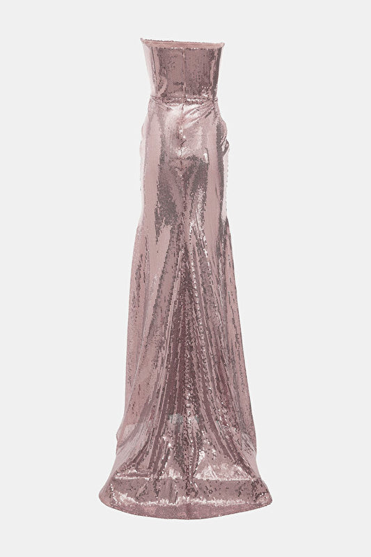 AP Strapless Godet Draped Sequin Gown Maxi Dress
