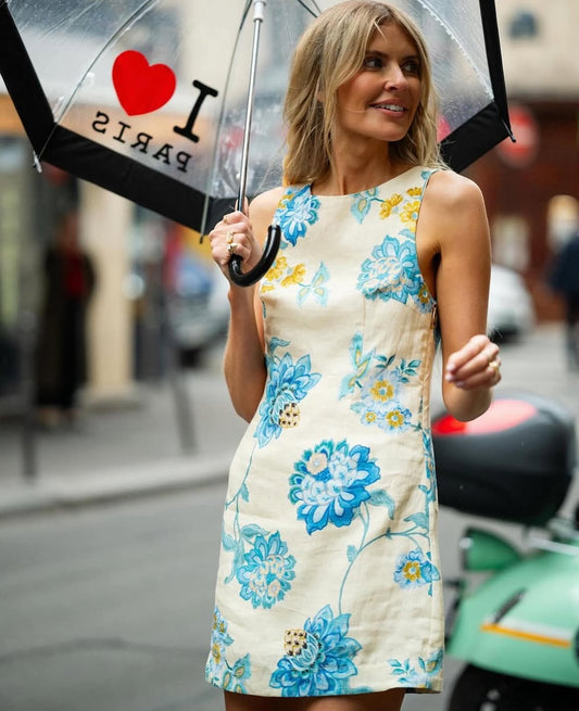 AA Morgan Linen Mini Dress in Lace Floral Flax