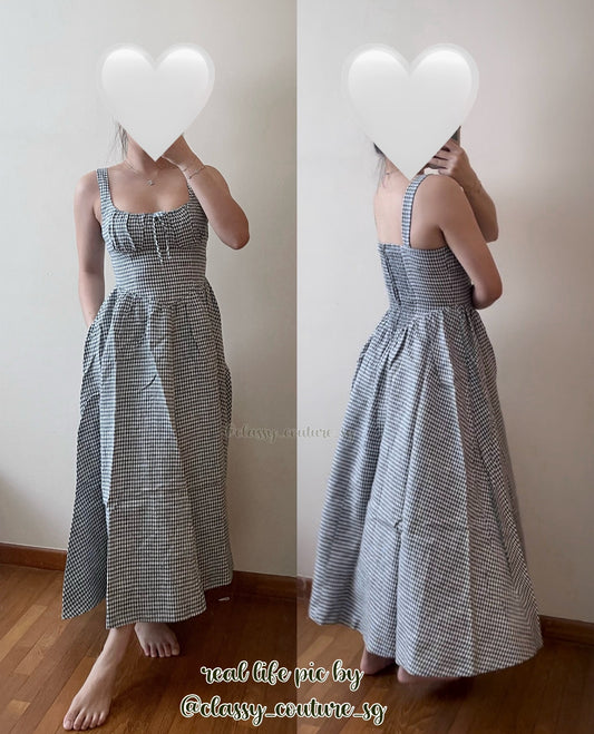 (PART 1/2) Ref Balia Linen Midi Dress in Slate Check | Angelic Blue | Strawberry Jam