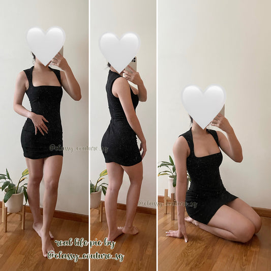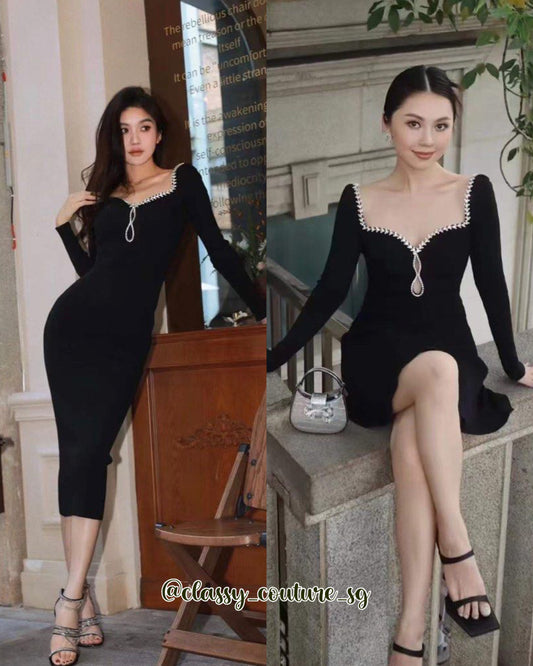 SP Black Knit Diamante Mini | Midi Dress | viscose-blend