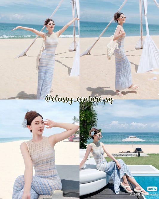SD Zade Blue Gradient Knit Ombre Maxi Dress | Zadine Cardigan | Set