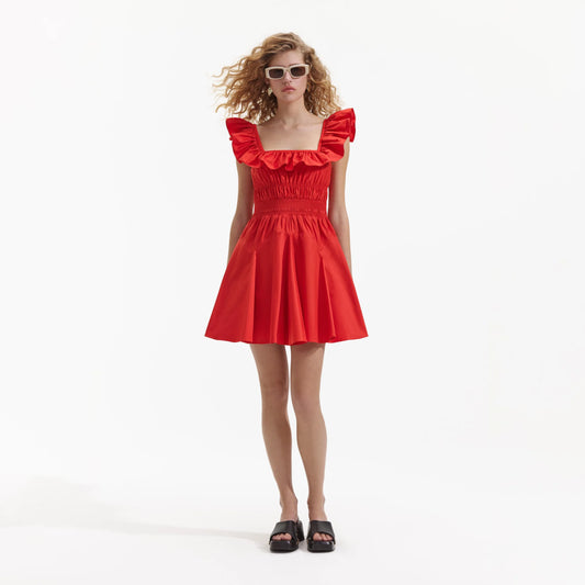 SP Red Cotton Ruffle Mini Dress