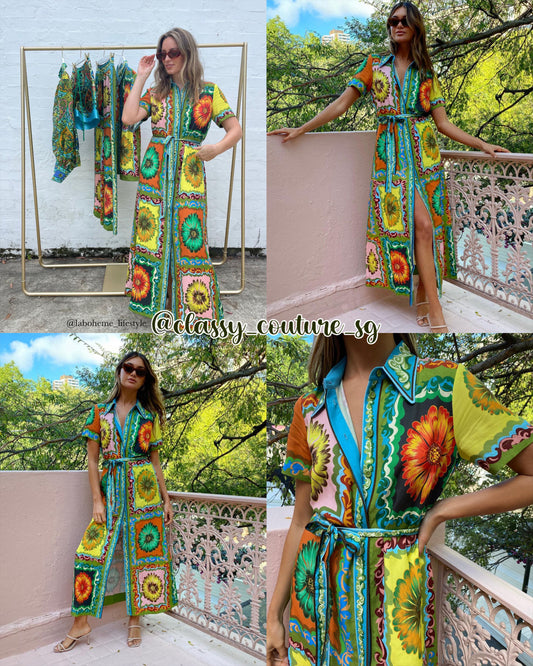 SL Silk Mesh Midi Dress in Aster Floral & Protection