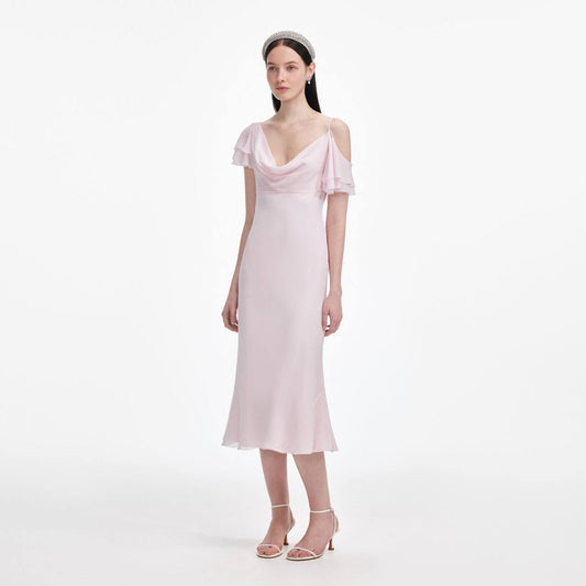 SP Pink Fine Lace Pearl Embellished Midi Dress
