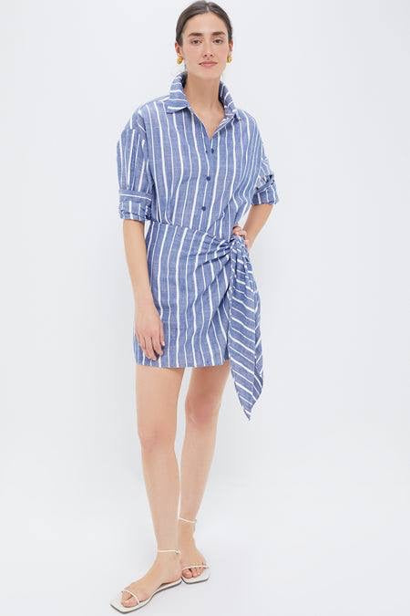 AA Alessandra Striped Chambray Sarong Cotton Mini Dress Shirtdress