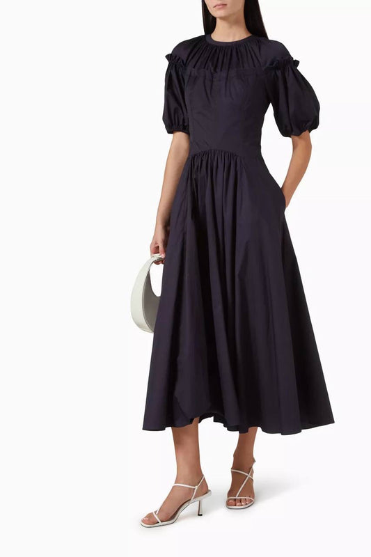 UJ Estelle Cotton Corset Midi Dress in Navy Blue
