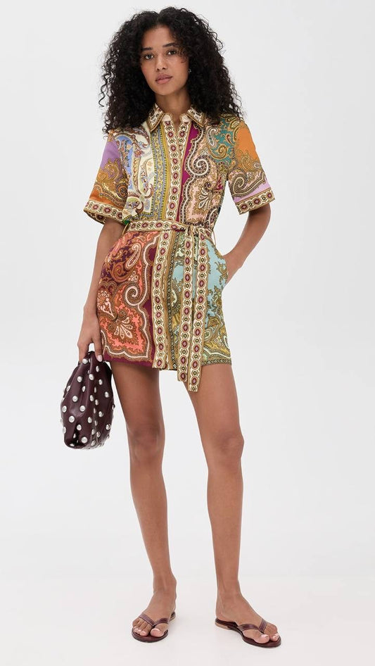 UJ Simona Silk Printed Long Sleeve Mini Dress