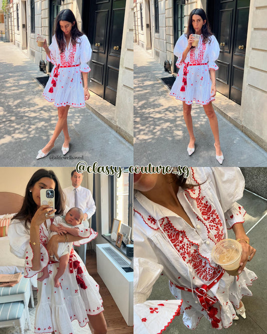 ALM Hearts Embroidered Cotton Poplin Mini Dress