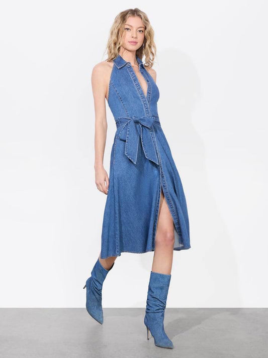AO Chassidy Chambray Halter-neck Cotton Midi Dress