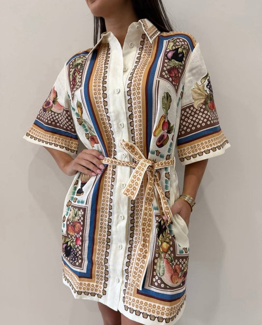 ALM Pia Blue Printed Linen Mini Dress Shirtdress