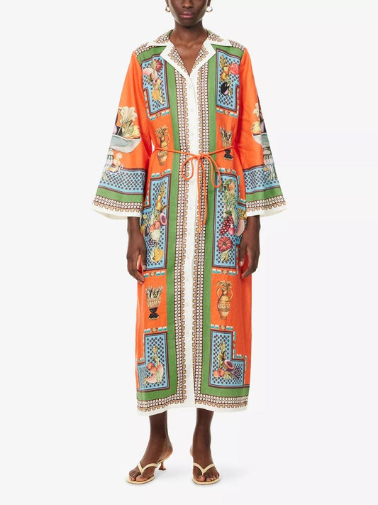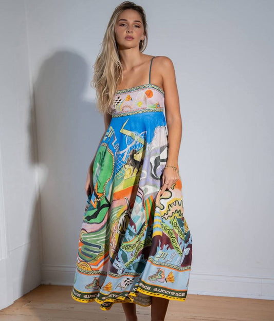 ALM Lucky Pace Printed Linen Midi Dress Sundress