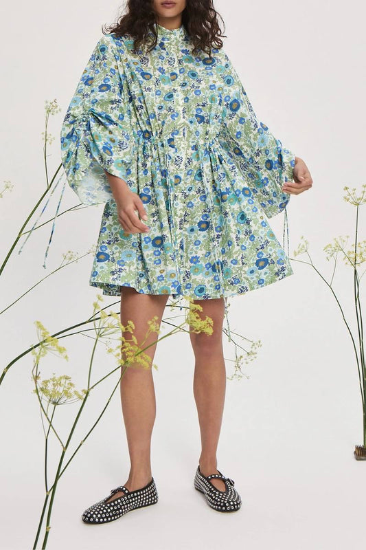 ALM Pam Cotton Floral Ruched Sleeve Mini Dress