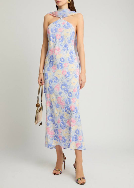 RX Hayley Detachable-Scarf Silk Midi Dress