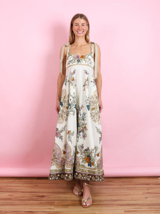 ALM Antoinette Linen Ballet Tie Shoulder Maxi Dress Sundress