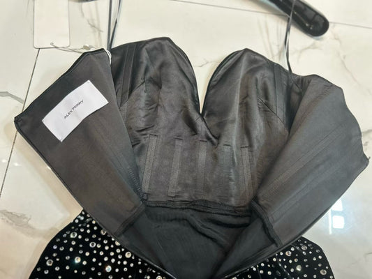AP Strapless Sweetheart Crystal Stretch Velvet Mini Dress