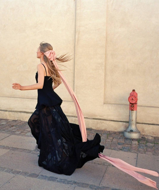 SG Tailored Bodice High-Low Maxi Dress in Ribbons Black