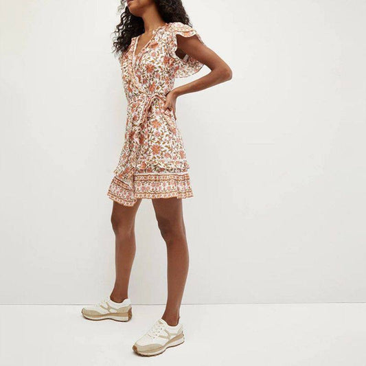 VB Mikhail Floral Cotton Wrap Mini Dress