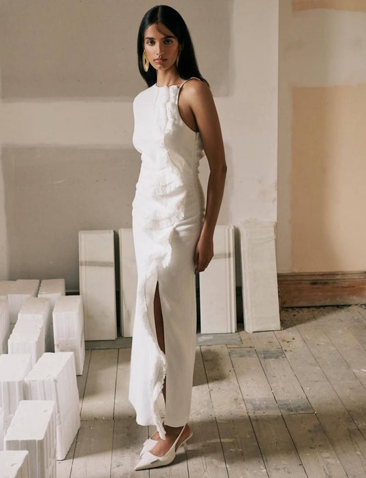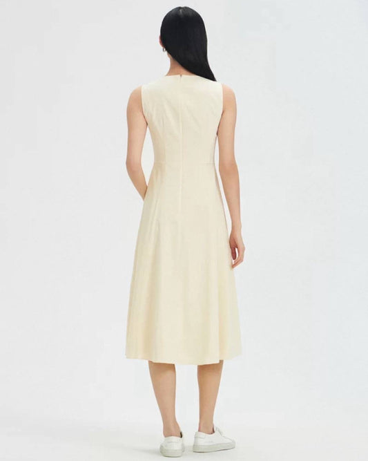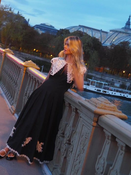 ALM Apollonia Lace Collar Viscose-Linen Midi Dress