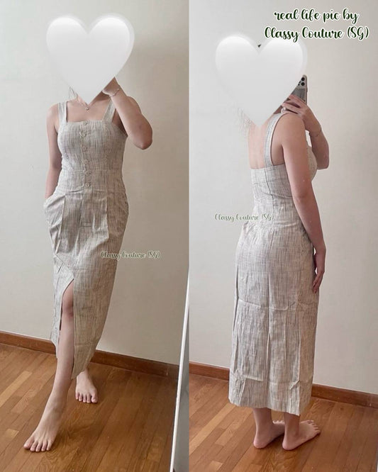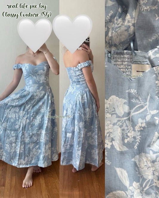 Ref Monet Linen Off Shoulder Midi Dress