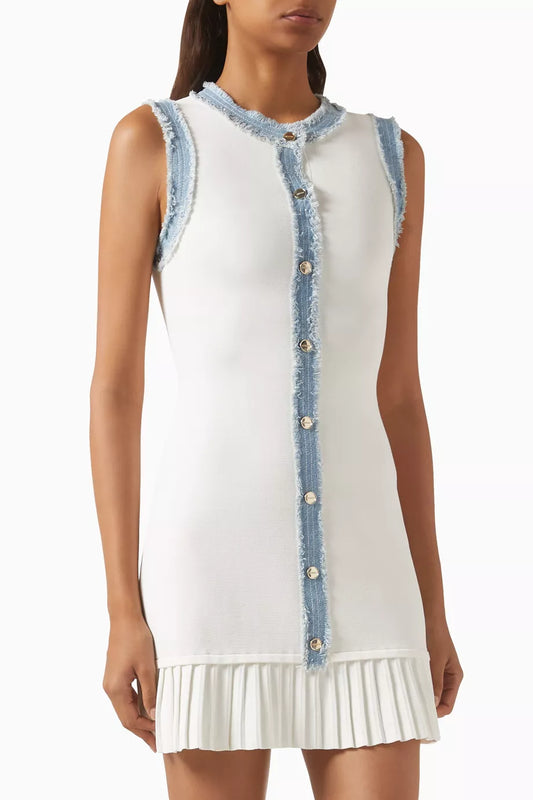SD Short Knit Mini Dress With Ruffles & Denim Contrast