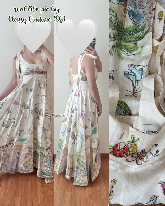 ALM Flores & Nadia Linen Midi Sundress Dress