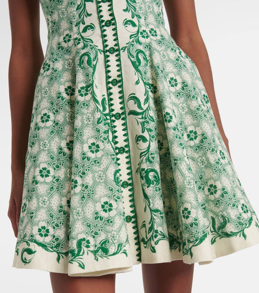 ALM Olive Linen Printed Mini Dress