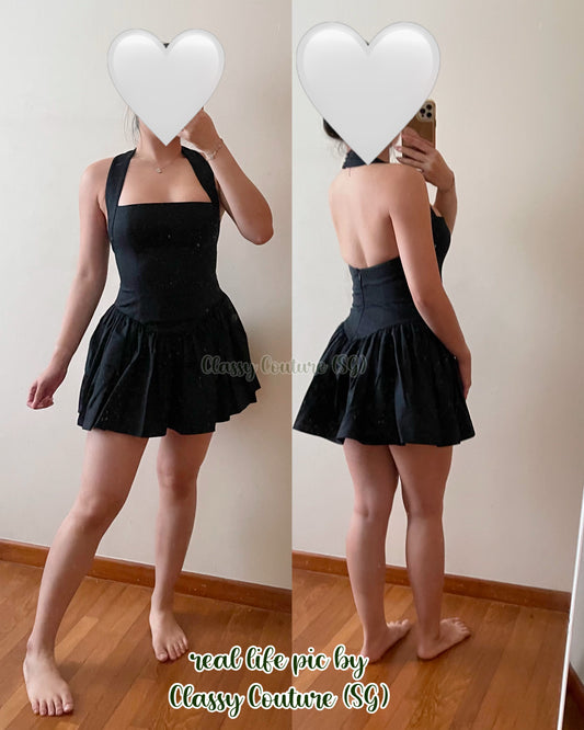 BEST! HS Faille Stretch-Cotton Halter Mini Dress