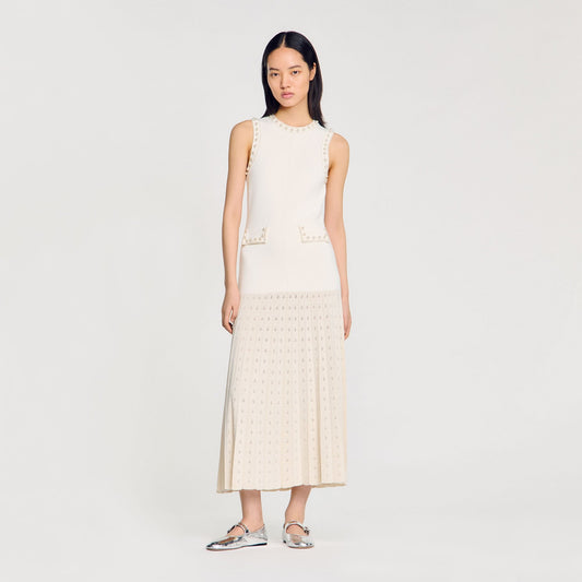 SD Pearl Bead Knit Maxi Dress | Cropped Cardigan with Pearl Buttons | Set