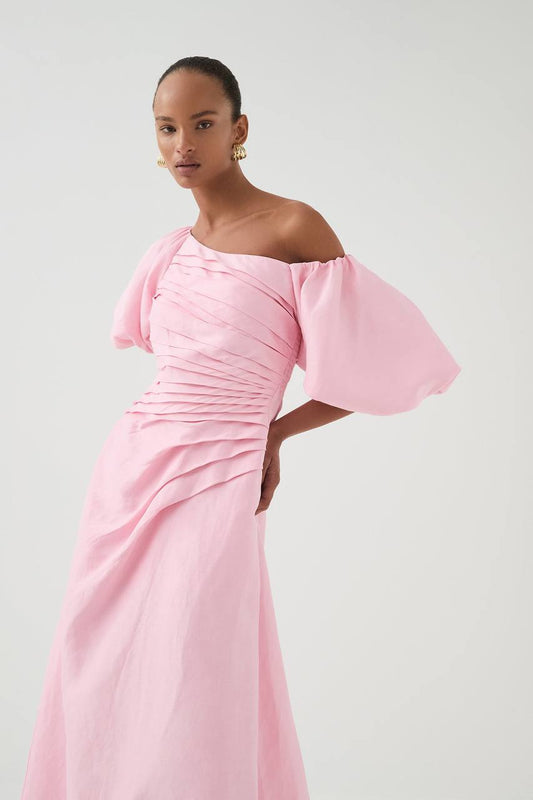 AJ Cadence Viscose-Linen Ruched Midi Dress
