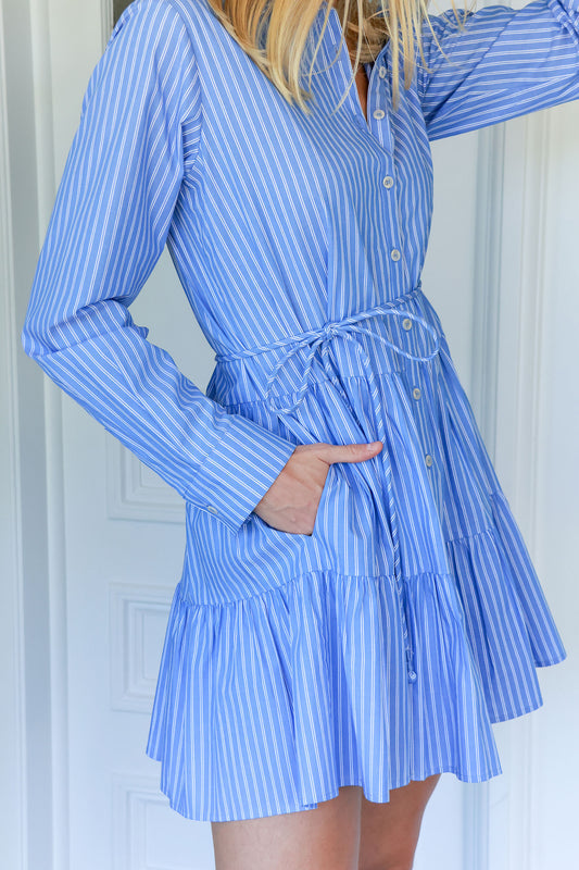AA Anna Stripe Cotton Shirtdress Mini Dress