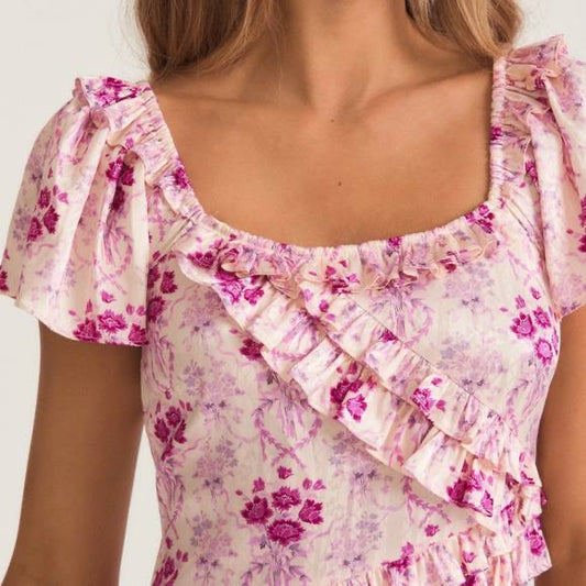 LSF Kenya Short Sleeve Ruffle Satin Maxi Dress