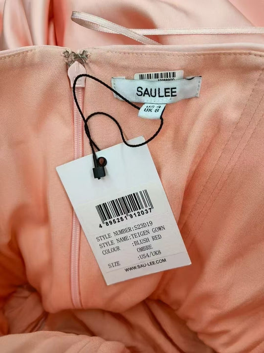 SAU Teigen Blush Red Ombre Strapless Gown Maxi Dress