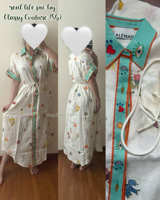 ALM Holiday Go-To Embroidered Linen Shirtdress Midi Dress