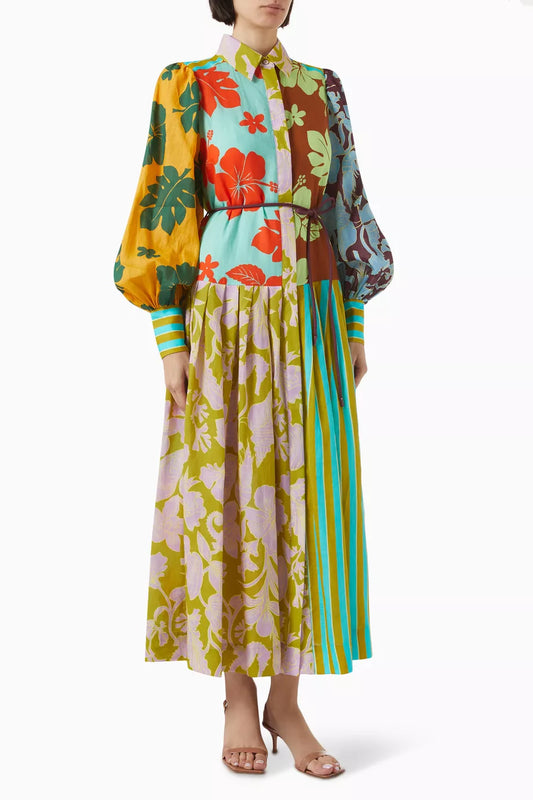 ALM Pia Printed Linen Midi Dress Shirtdress