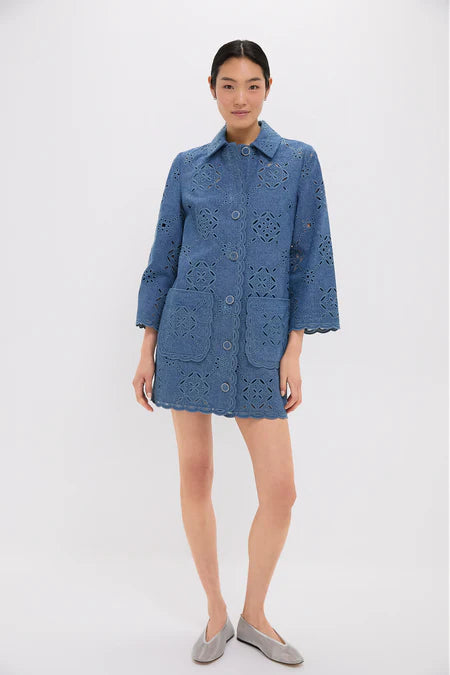 VB Erilyn Eyelet Cotton Mini Dress in Sea Glare Blue